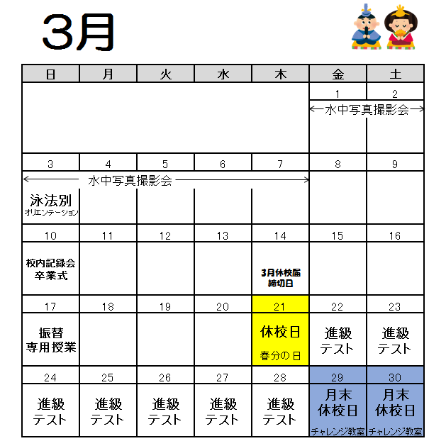 【 今月のジュニアクラス授業日 】