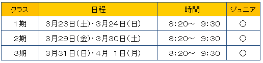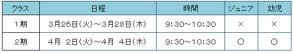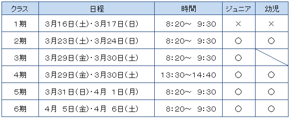 〇→空いています △→残りわずかです ×→定員です★はじめての体験教室の詳細は、こちらをクリックしてください★