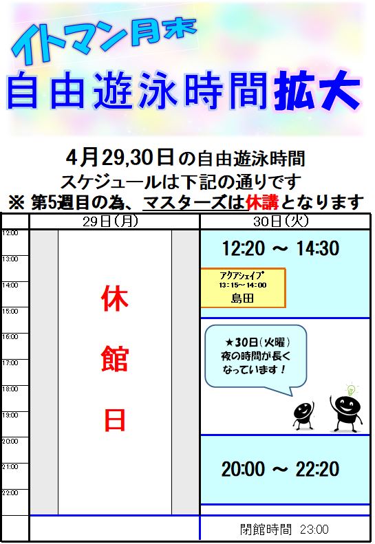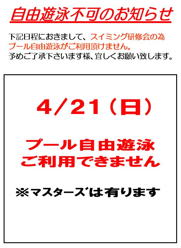 月末の自由遊泳については、決まり次第ご連絡致します。