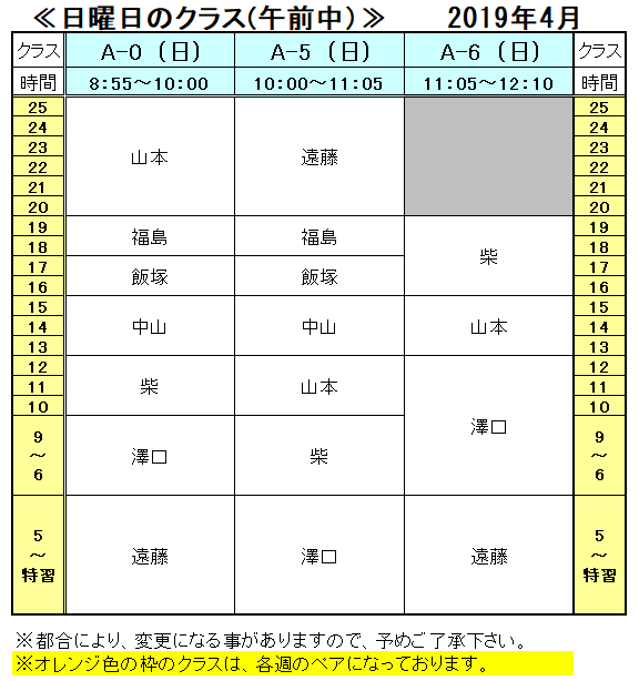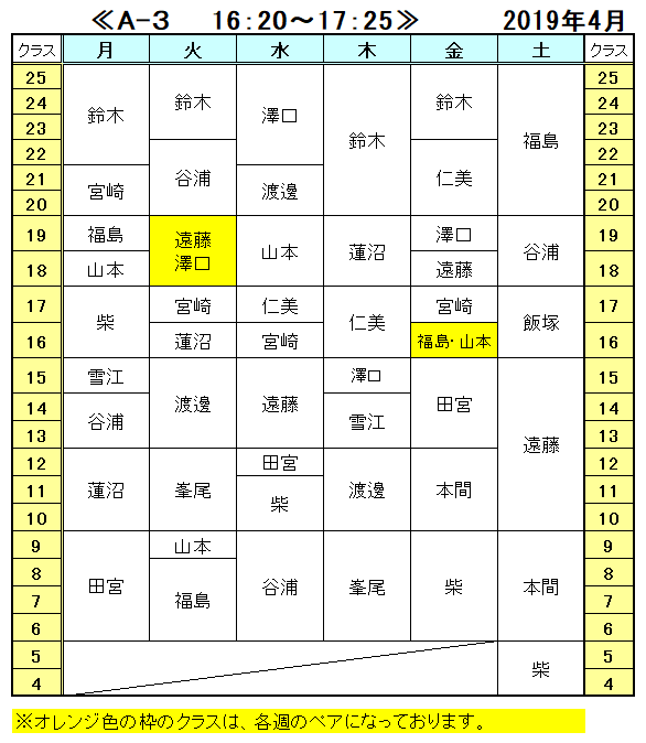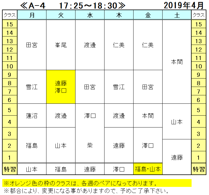 <2019年 4月の担当表>