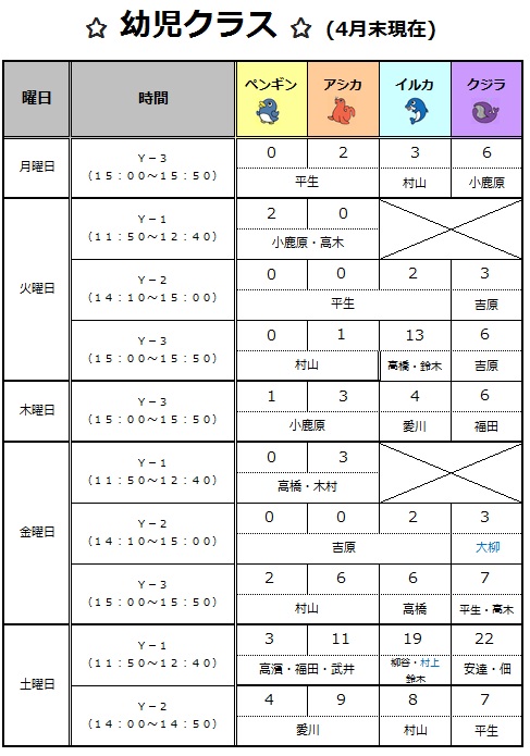 2019年5月幼児クラス担当表です!