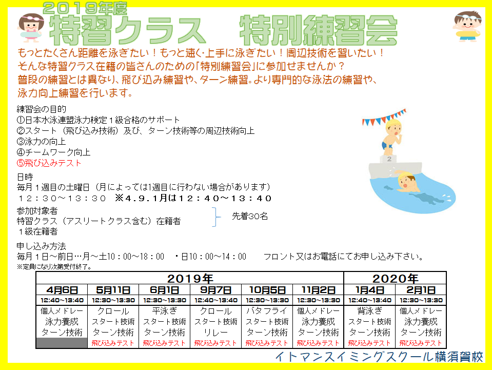 より専門的な泳法の練習や、泳力向上練習を行います。![]()