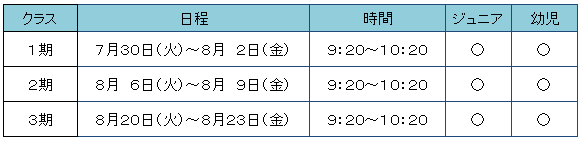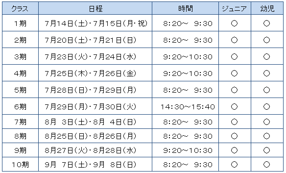 〇→空いています △→残りわずかです ×→定員です★はじめての体験教室の詳細は、こちらをクリックしてください★