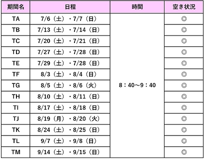 休校日:祝祭日・月末29〜31日・1/1〜1/3・8/13〜15