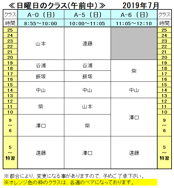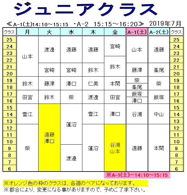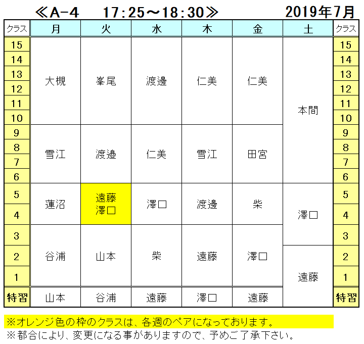 <2019年 7月の担当表>