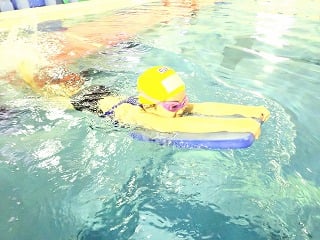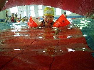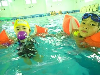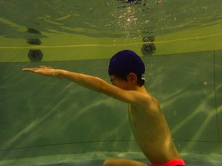 水慣れ後は、顔付けや鼻からの呼吸動作の練習