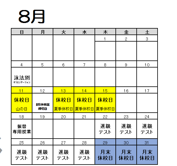 【 今月のプール開放日時 】