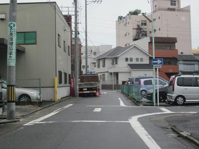先ほどのつきあたりを曲がってすぐの一方通行を右折します。