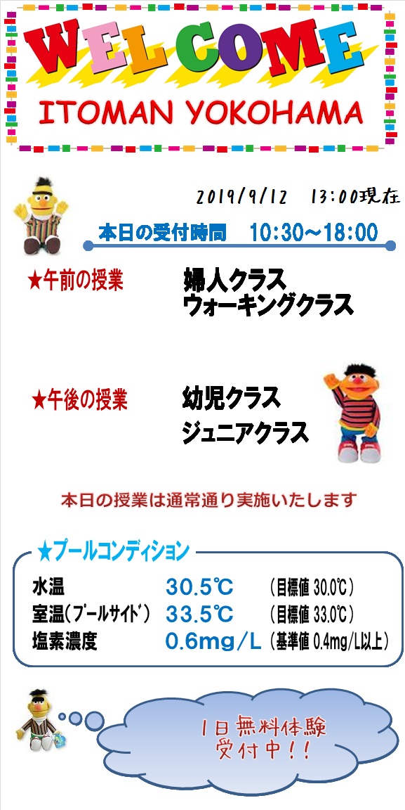 本日の営業状況【2019.9.12pm】