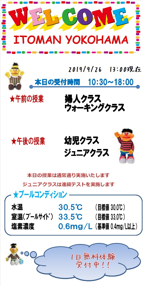 本日の営業状況【2019.9.26pm】