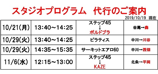 変更になり次第、館内に貼り出しまたはHP・Facebookにてご案内致しますので、ご確認のほど宜しくお願い致します。