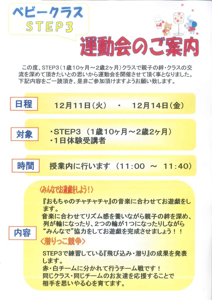 ★ベビークラス STEP3 運動会のお知らせ★