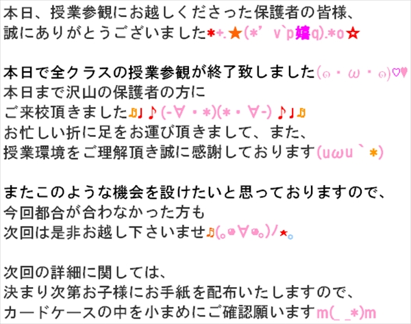 授業参観終了(人∀≦+))「有難う御座いました♪」