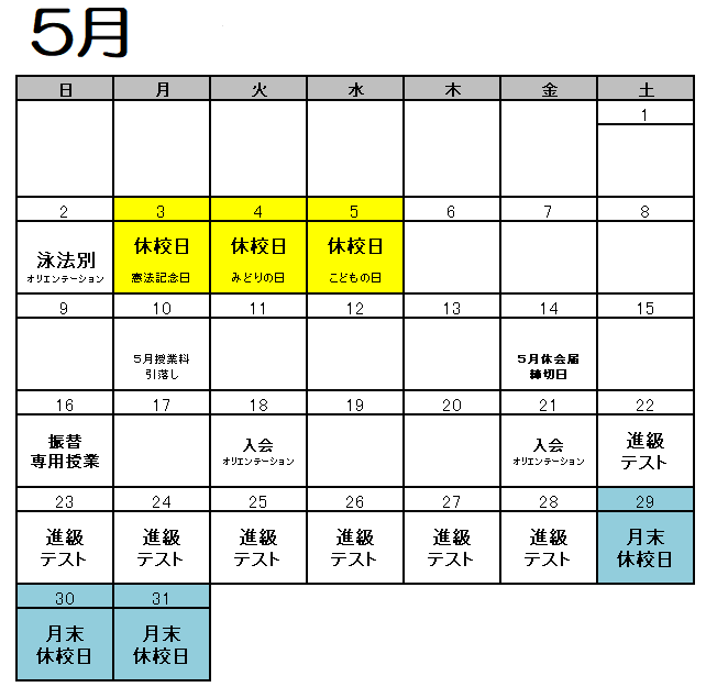 3日(月)・4日(火)・5日(水)は祝日休校日となります。