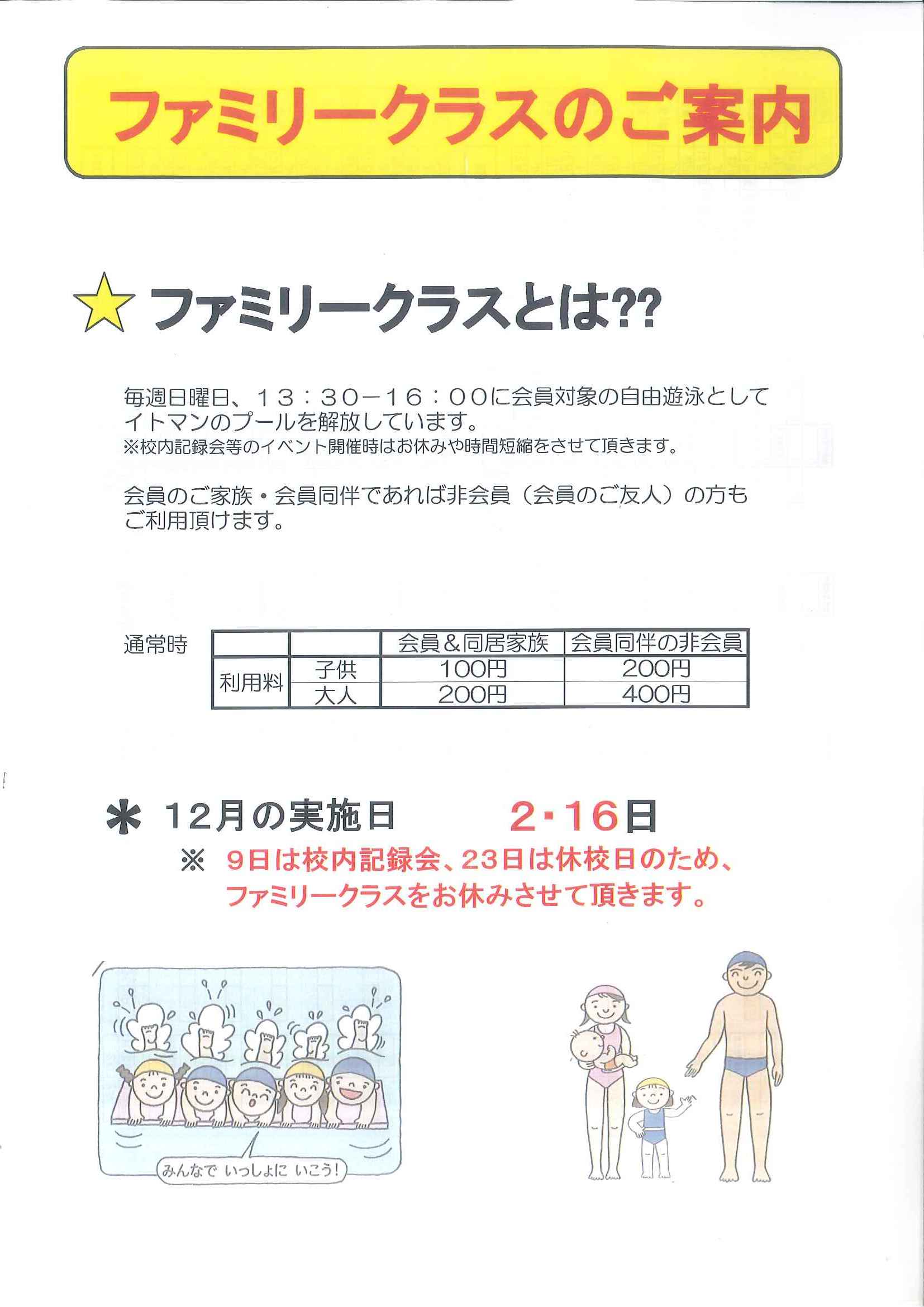 ★ファミリークラスのご案内★