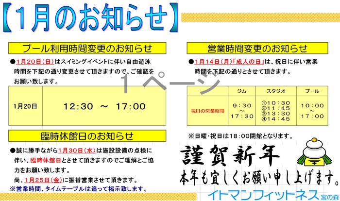 フィットネス1月お知らせ
