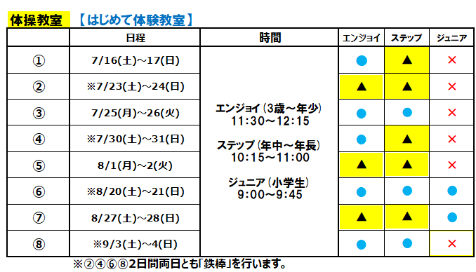 【夏イベント・体操教室】7/16(土)よりイベントスタート!!