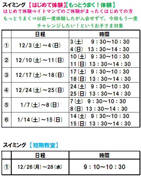 冬休みはぜひイトマンへ♪ 寒い冬こそプールで体をきたえよう!