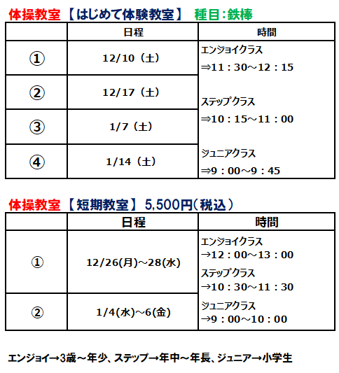 以前体験したことがある方や、現在ご在籍されている方は、3日間『短期教室』へ!