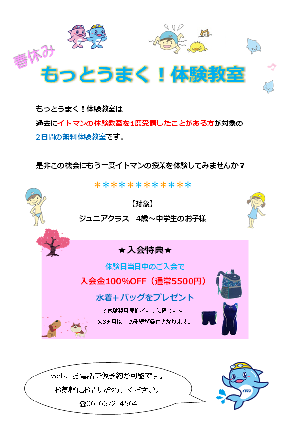 ●定員について各クラス定員がありますので、お早めにお申し込みください。