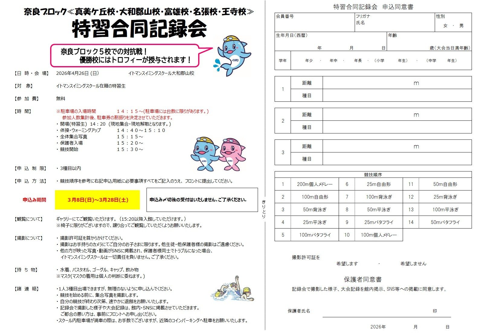 | 対象 | イトマンスイミングスクール特習クラス在籍の方 |