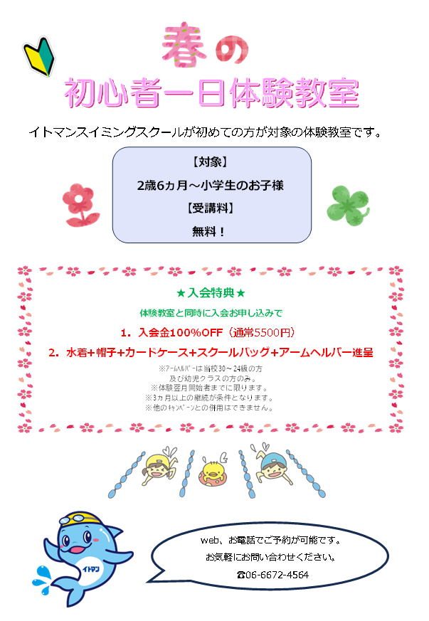 イトマンスイミングスクールでの受講がはじめての方に限ります。