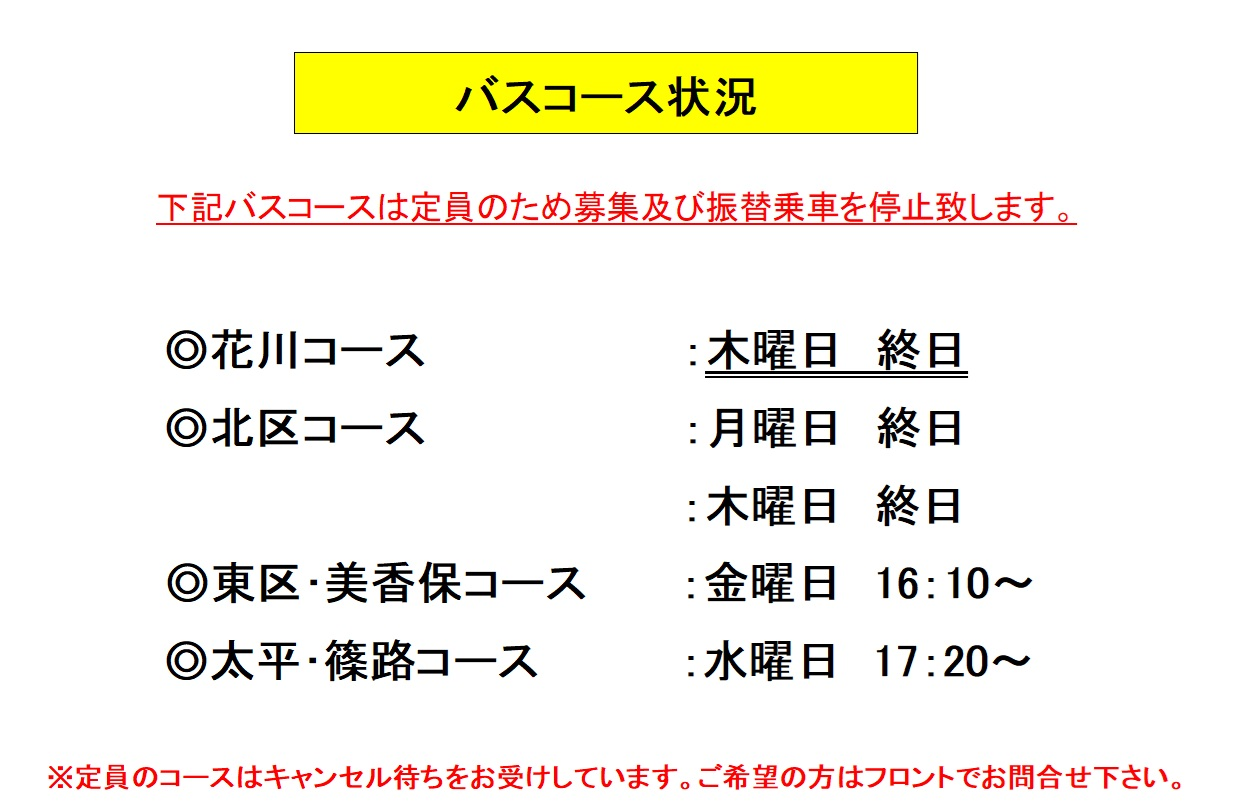バス状況について(2026年2月26日現在)更新
