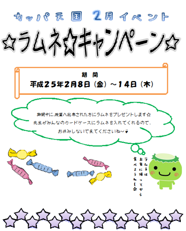 ジュニア・幼児・ベビークラスの皆様へ★カッパ天国2月イベントのお知らせ