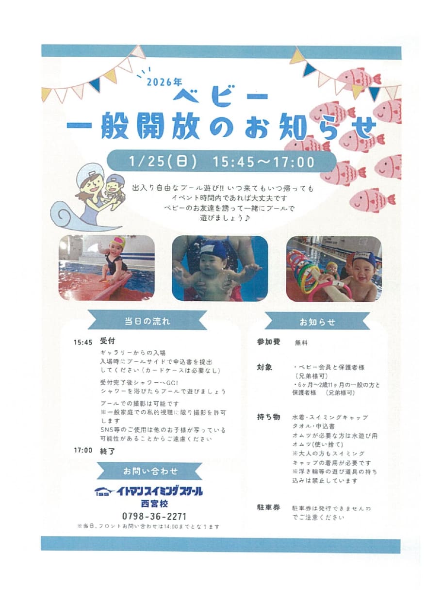 ベビーちゃんを対象に一般開放の楽しいイベントを実施します!