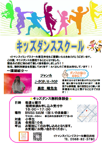 イトマン春日井校ではキッズダンススクールを開催しております。