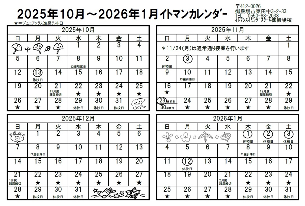 *クラス変更・休会・退会届は、前月21日までとなります。 お手続きは、お早めにフロントまでお越し下さい。 (休会届のみマイページより登録できます)