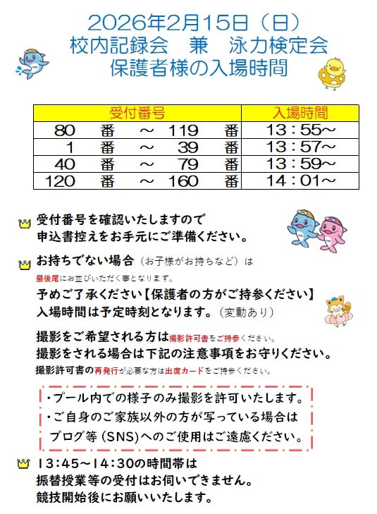 保護者様の入場時間は こちら🏊