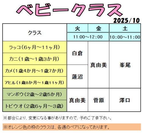 上記のクラスに入会・クラス変更ご希望の方は、キャンセル待ちとなります。