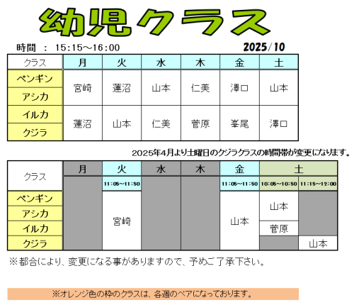 土曜日 午前(10:05~10:50※クジラクラスのみ11:15~12:00)