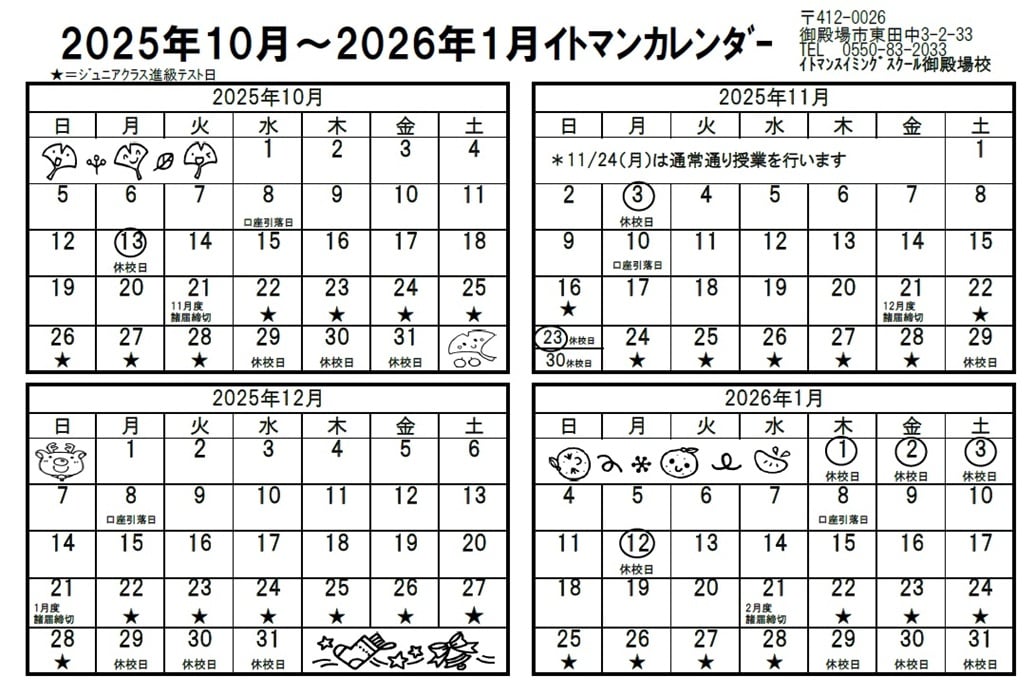 *クラス変更・休会・退会届は、前月21日までとなります。