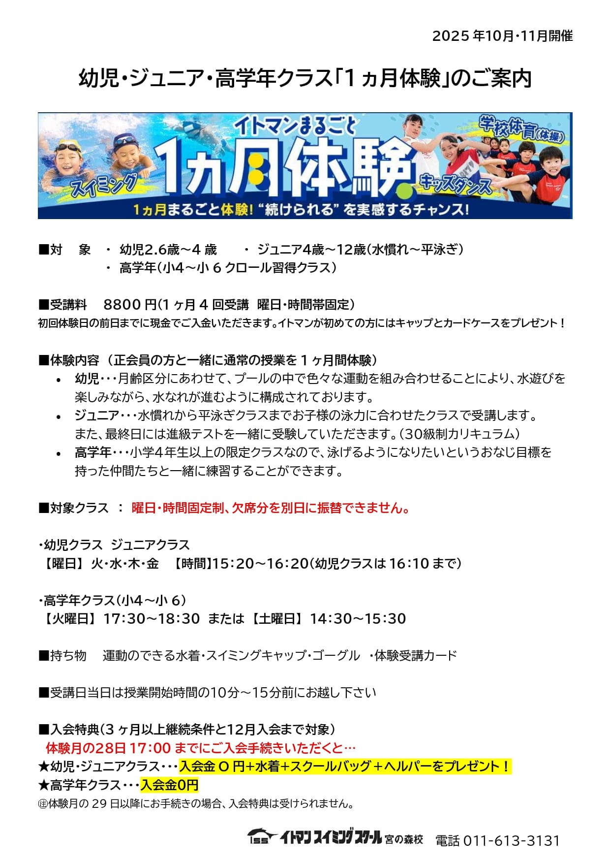 好評につき追加開講!1ヶ月体験教室(4回8,800円) ジュニアクラス(4才~小学生まで)