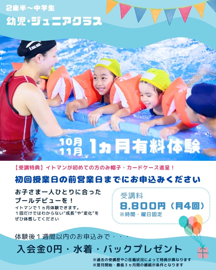 10月・11月限定で1ヵ月有料体験を開催いたします!気になる空き状況や当日の持ち物など・・・お気軽にお問合せください✨