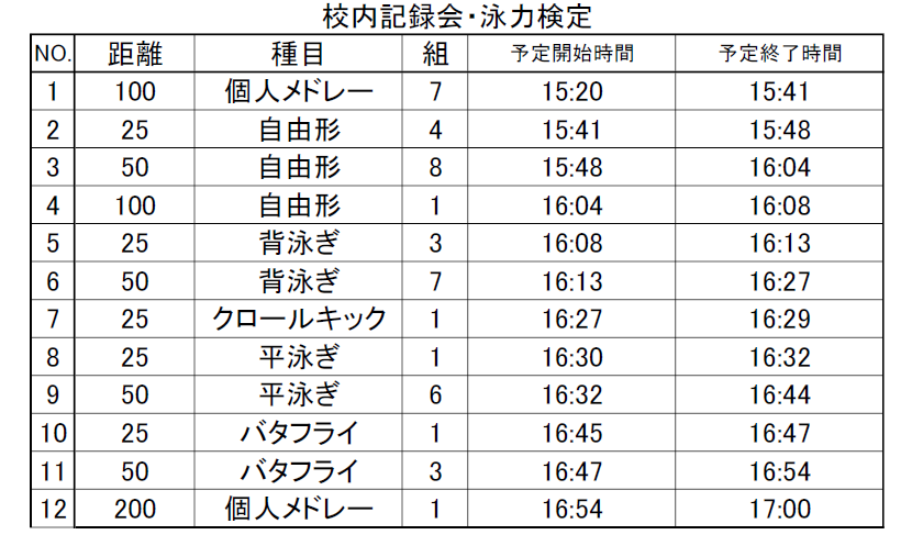 ※洋服のままシャワー室に集合(記録会参加者は水着可)