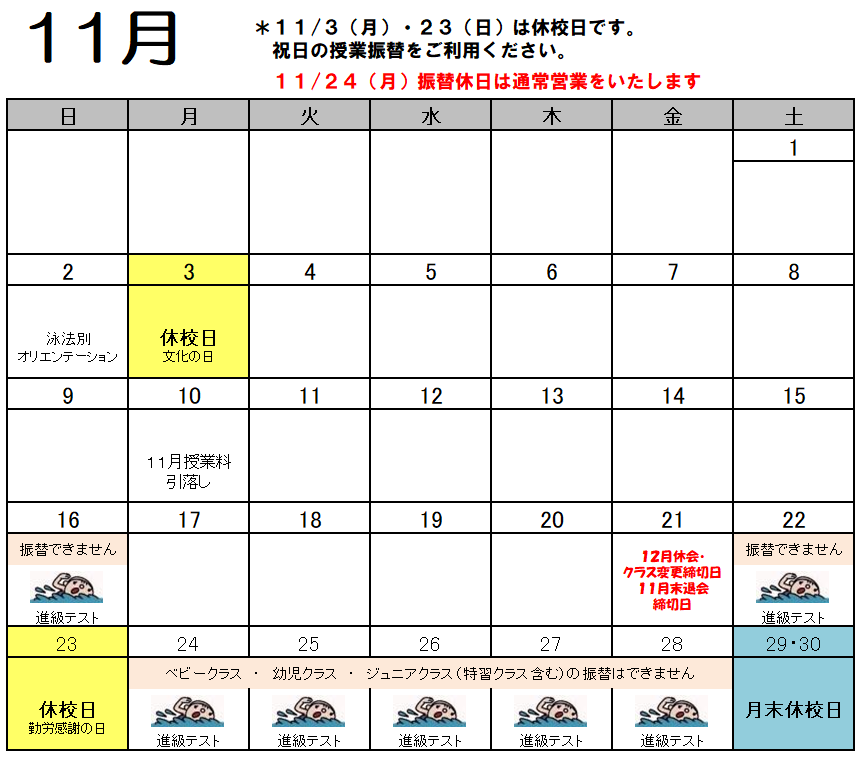 クラス変更 前月21日まで 例)12月から変更したい → 11月21日締切り