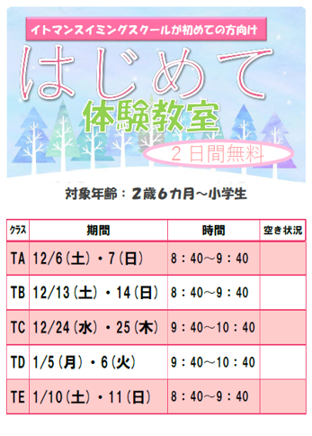 日程が合わない方・すぐに始めたい方は一日無料体験もございます!