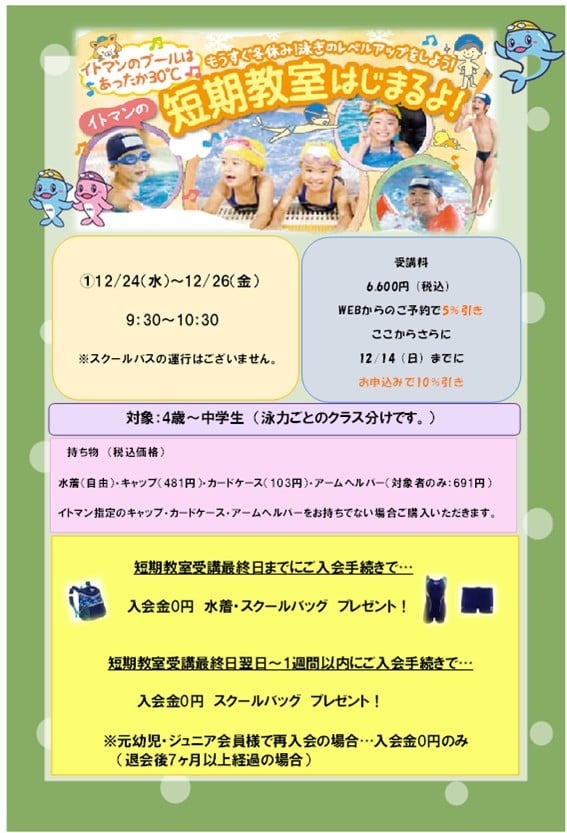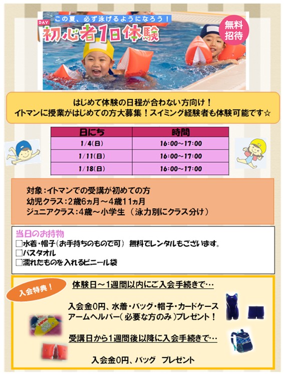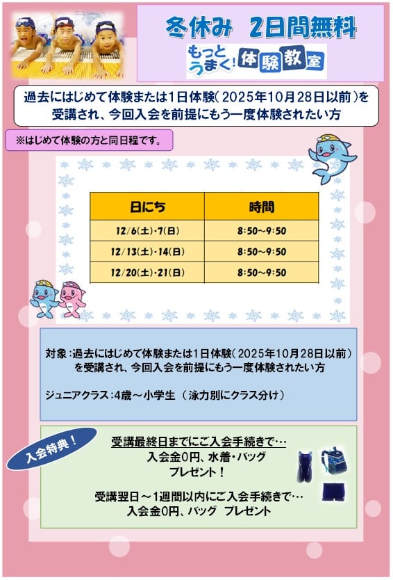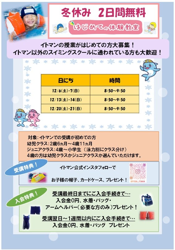 冬の無料体験・短期教室 開催決定!!