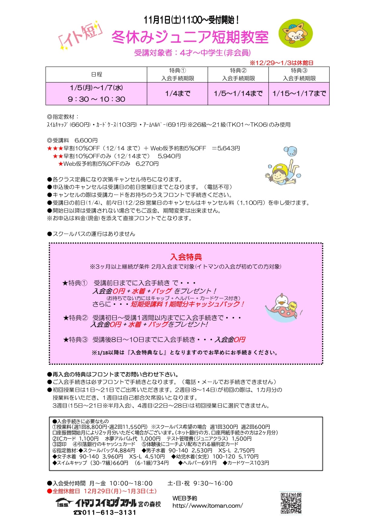 11/1(土)から受付開始!冬休み短期教室のご案内です(^^♪
