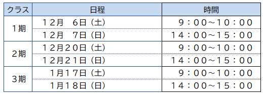 定員の場合がございます。事前にクラスに空きがあるか確認をお願いいたします。