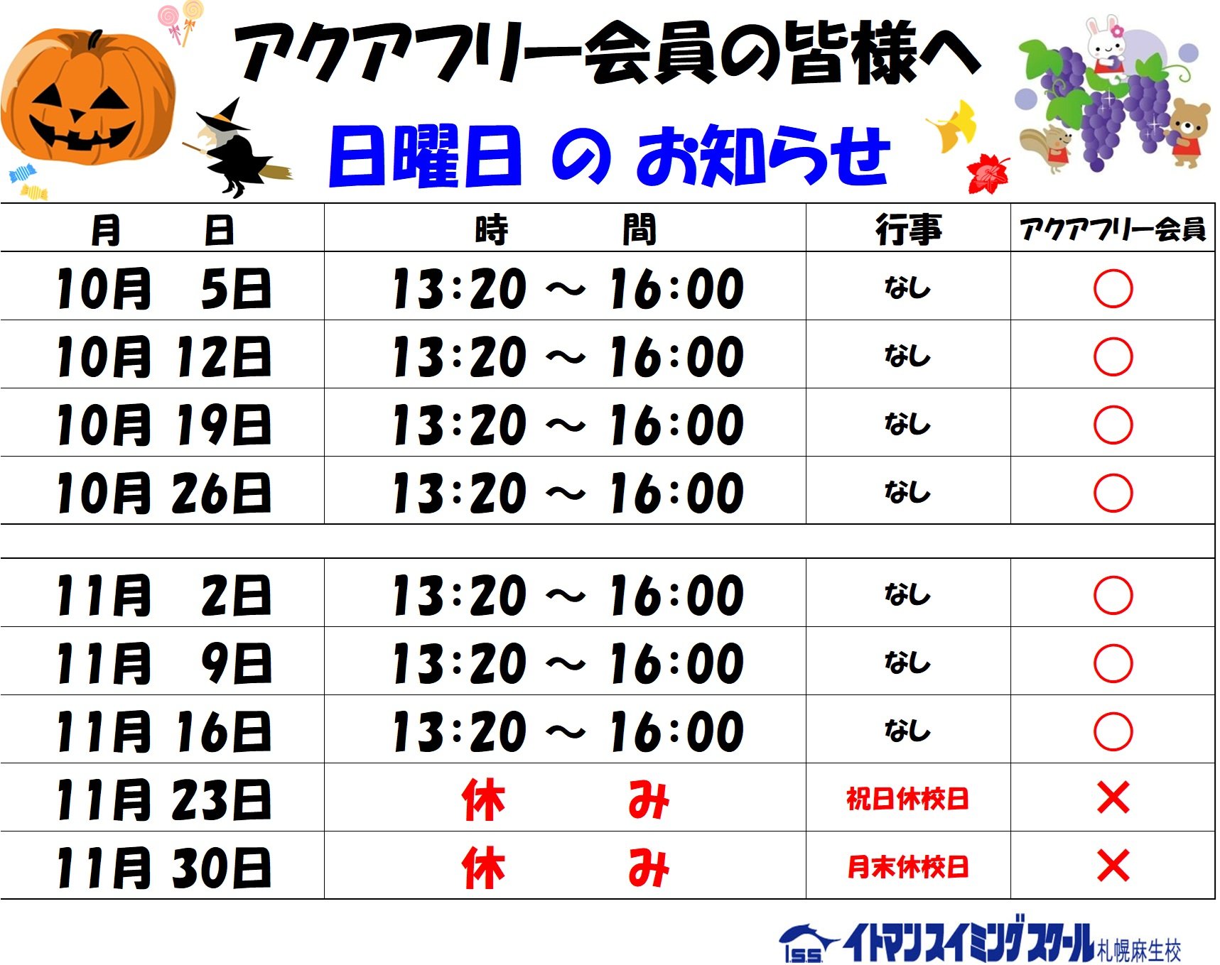 【日曜日のお知らせ】