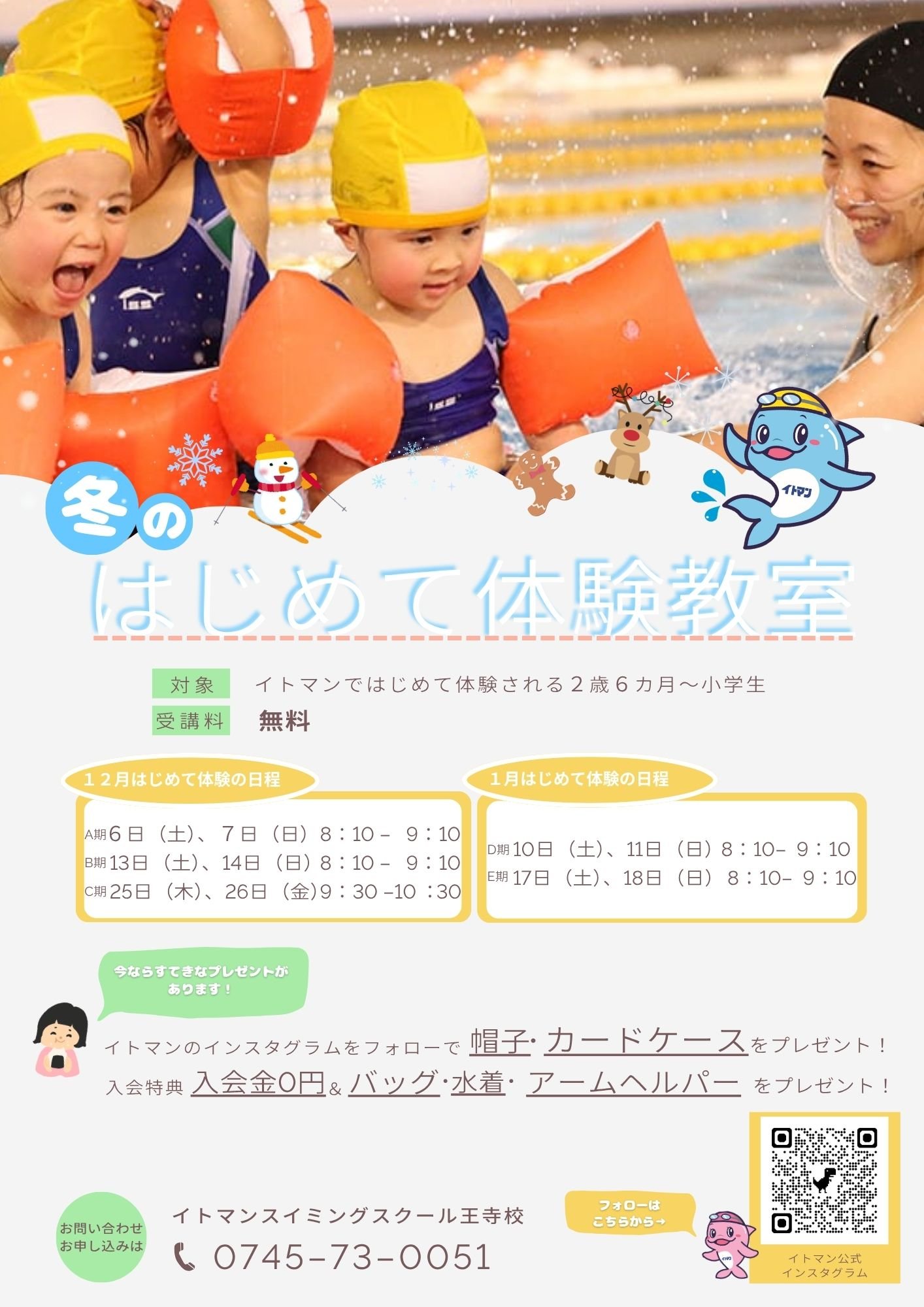 イトマンスイミングスクールでは、冬の特別体験教室を開催いたします☃❄