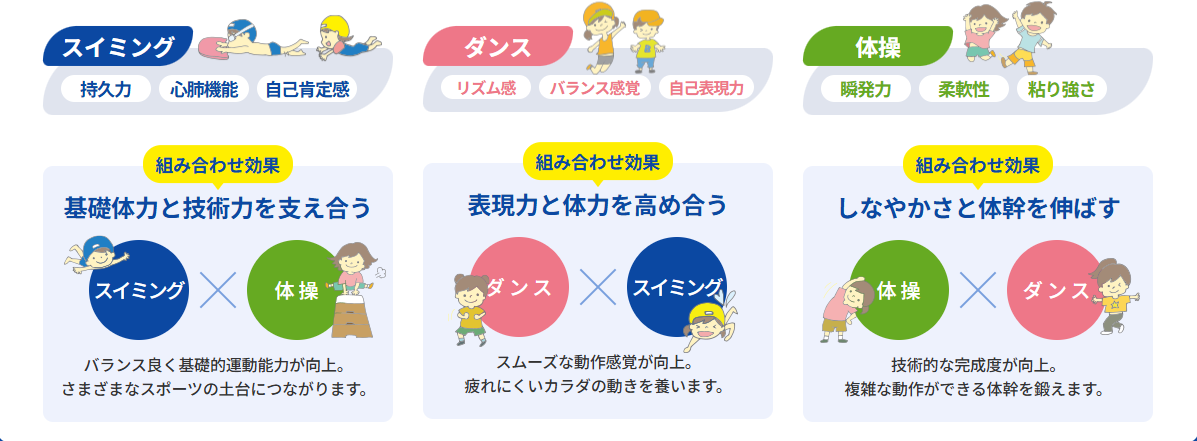 スポーツの組み合わせ方によってさまざまな運動能力を向上させることができます。