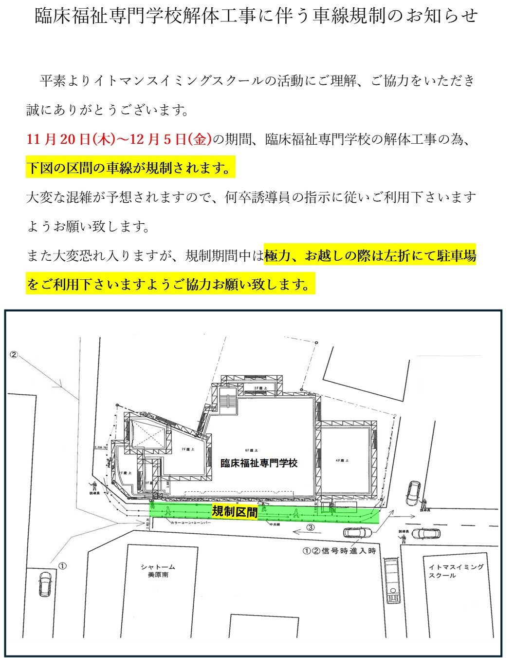 臨床福祉専門学校の解体工事に伴う車線規制のお知らせ
