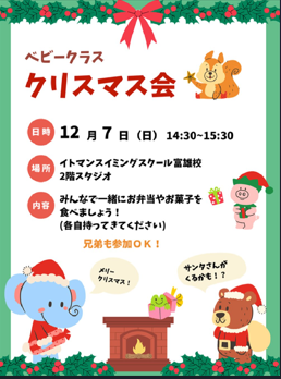 【ベビークラス】12/7(日)クリスマス会のお知らせ