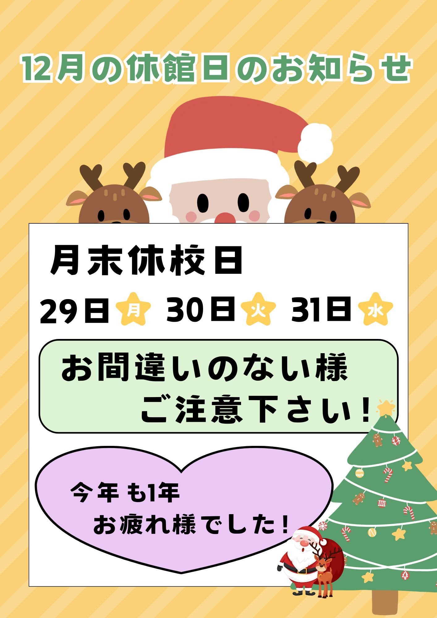 12月の休館日です。
