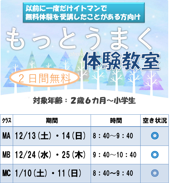 「他のスクールに通ってるけどイトマンを体験してみたい」